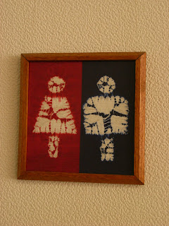 Shibori is sort of like 1960s American-style tie-dying, but an intricate pattern is stitched into the cloth, then the cloth is dyed and the stitching is removed. The artistry of doing this has passed primarily through women most of whom are now very old and totally mesmerizing to watch. Here is the one practical use of shibori (at the museum),