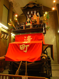 Behind a glass case upstairs was a huge mask also worn during the festival. There was no English label so I asked my host what it was. He told me that it was a mask...then after a pause, continued that it is of a famous Japanese goblin called a yamabushi-tengu with facial features (big nose, blond hair, and large eyes) modeled after foreigners (!). After a little research I discovered that although the inspiration for this goblin could be the hairy, blond, big-nosed Westerner, the Japanese tengu history is long and complicated with so many versions and incarnations (tengu literally means "heavenly dog") that historians can not be sure of the big-nosed tengu origin, or at least they arent saying...